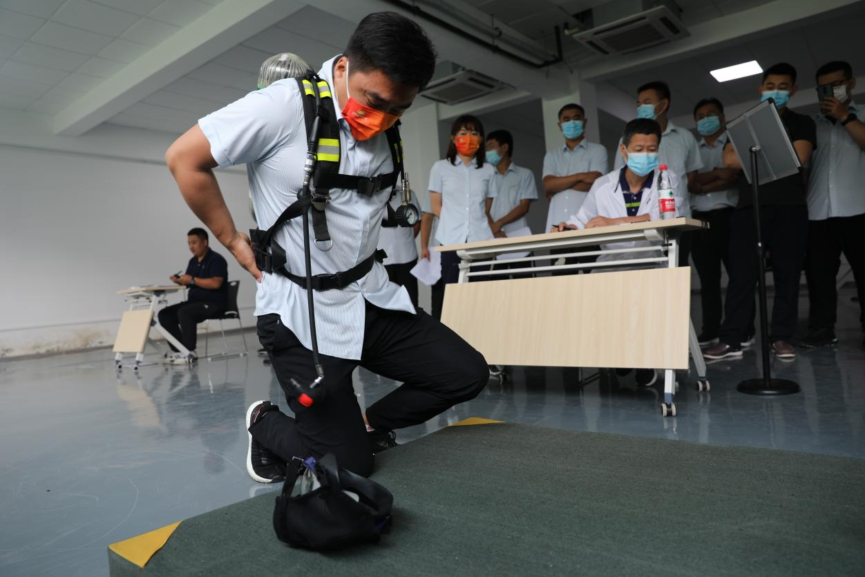 据了解,本次选拔共设安全标志识别、消防水带的连接、单人徒手心肺复苏操作、正压式空气呼吸器穿戴、高处作业防护用品穿戴五项环节,各参赛选手需在规定时限10分钟内,熟练完成各项实操科目,既考验个人能力也反映团队协作的重要性,激烈程度不言而喻。