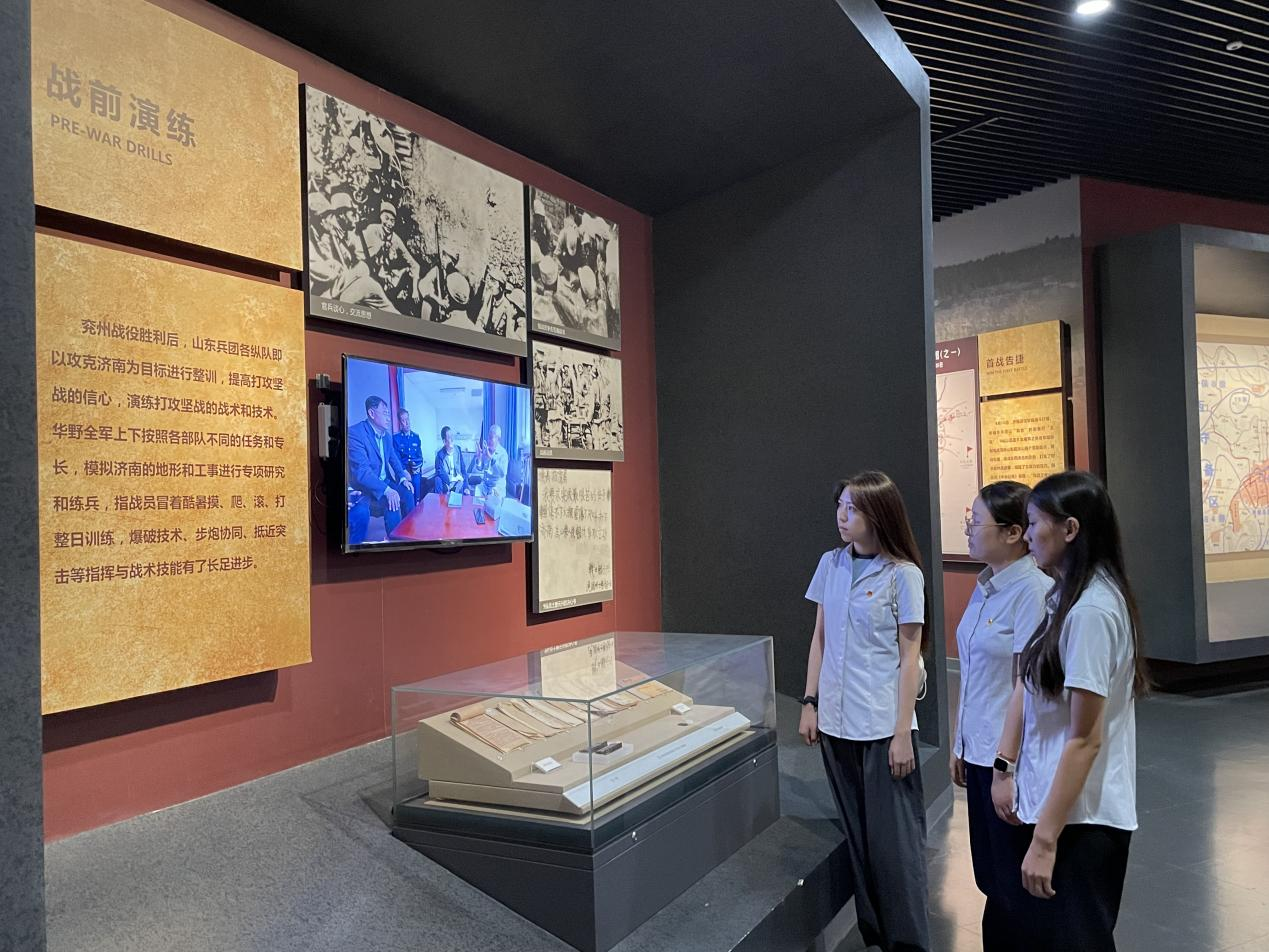 济南战役纪念馆承载着厚重的济南城历史记忆,参观纪念馆能深刻了解济南在伟大的人民解放战争中的重要历史定位和新时代红色基因在济南的赓续发展。进入全景画馆,仿佛已经超越了时空。高梯被截断,建筑被摧毁,战士们浴血奋战,英雄先烈靠强大的信念穿越枪林弹雨,最终吹响了胜利的号角!先烈们这种不畏牺牲、浴血奋战、夺取胜利的精神深深地鼓舞着每一名参观的同志。纪念馆里陈列的展品和照片,无不诉说着以往的艰难岁月,无不昭示着无数革命先烈为人民解放和民族独立而奉献的青春热血。展品无声却胜有声,这些展品像一部时光机,仿佛穿越般真正回到了那段硝烟弥漫的战场,警示人们勿忘历史,砥砺前行,学习先烈们不屈的精神和坚强的意志,在新时代中传承好红色文化基因。