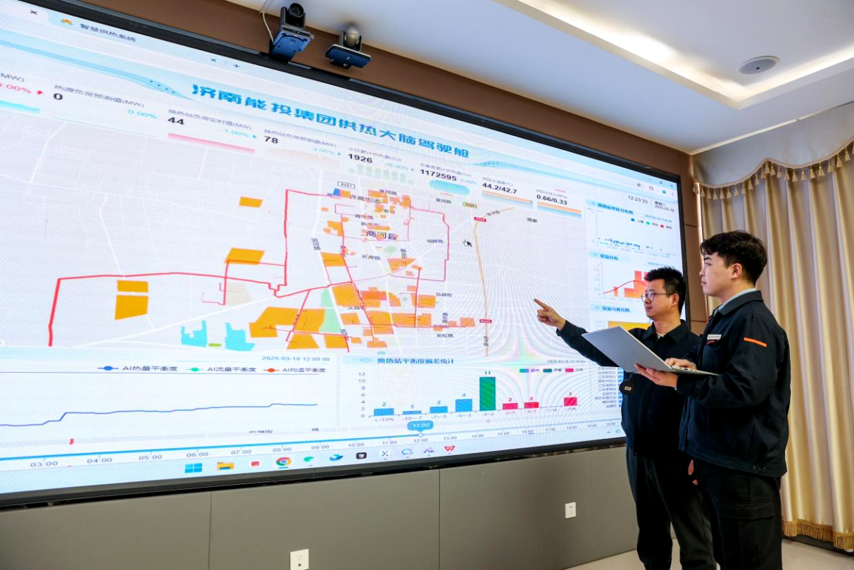 记者了解到,商河县目前有75座换热站,385万平方米的供热面积,2024—2025年采暖季,“智慧供热大脑”对热网进行了14.9万次精细调节,反馈温度不稳定的用户比例降至5%以下,此外还实现了4%的能源节约,较上一采暖季3.03%的节能率再提升0.97个百分点。